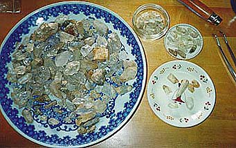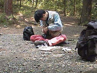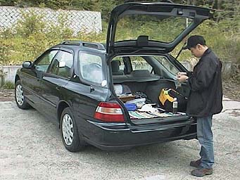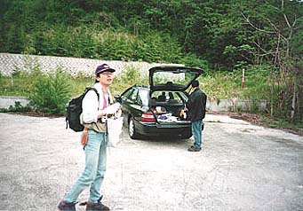 というワケで、えっちらおっちら平沢に着いた。運転手ご苦労様。「おれ眠いよ」と言わんばかりのI-U氏。きのうは2時間睡眠らしい。でも道具揃えだけは完璧な彼であったが、採集前日に力付き果てた印象。